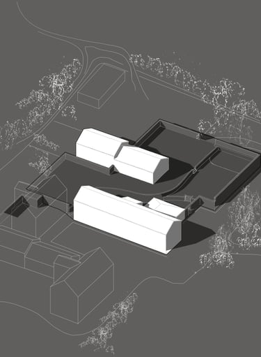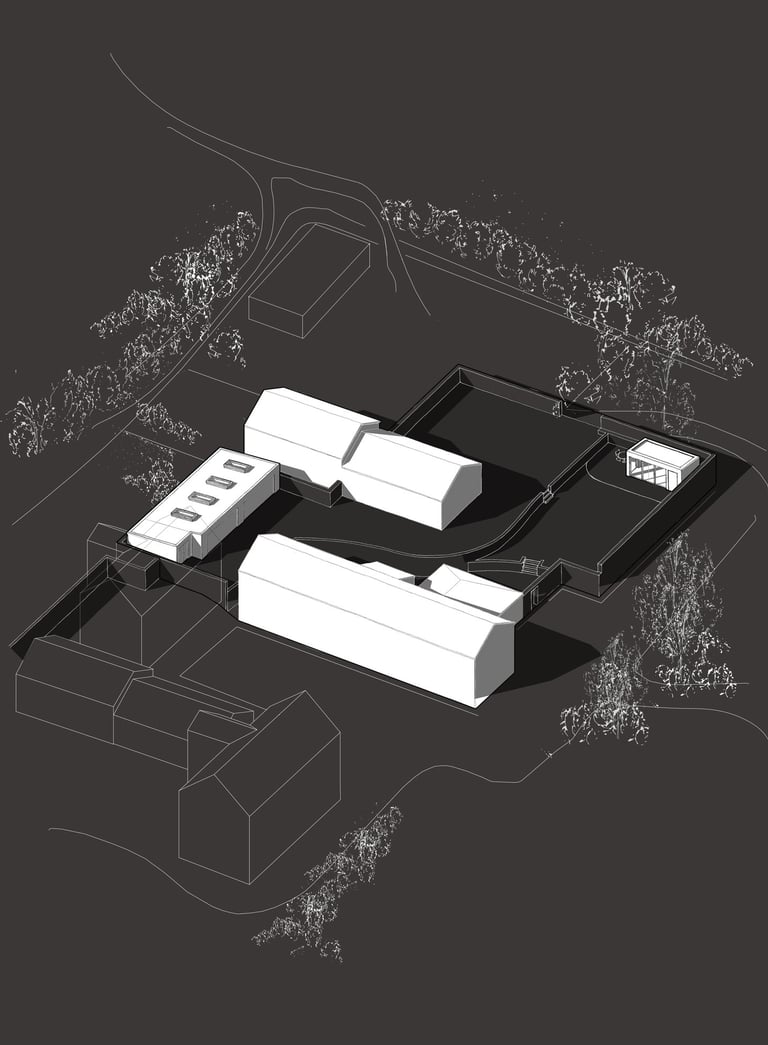 Sensitive additions to an existing farm cottage located in Green Belt land. The vernacular garden room and garages are designed in simplified monolithic form to be constructed using local stone from the surrounding farmstead.