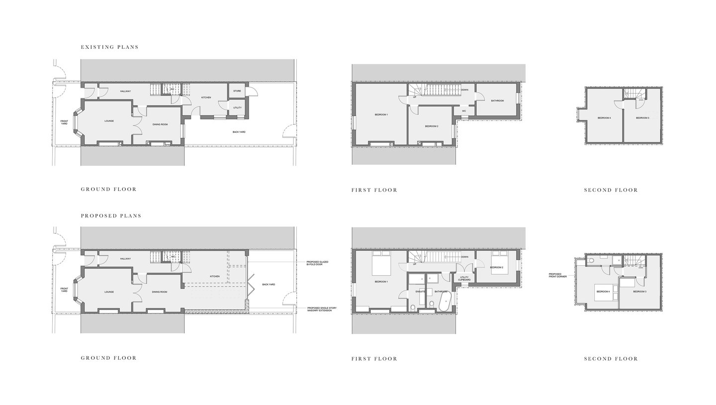 Extension of a traditional York terrace house, extending at ground floor and second floor alongside internal reconfiguration to improve the efficiency and experience at each floor.
