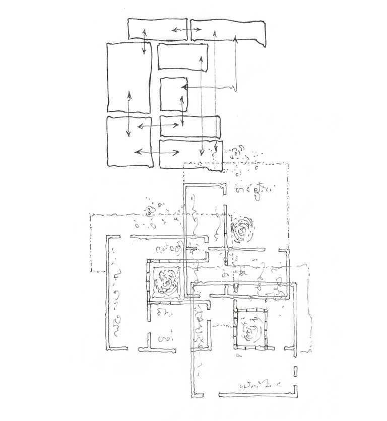 Diagrammatic options proposed for ideal adjacencies, circulation, everyday efficiency & key moments